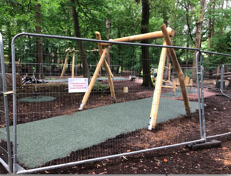 After four years of cajoling and various meetings with the LBE we are delighted to see that the popular Adventure Playground equipment that was summarily removed by the LBE over four years ago is now being restored. Once all the checks and tests have been made it should all be open and working by next week. We are so pleased to have this equipment back as it was a feature of the park that was missed and fair play to LBE for finally coming through and doing a good job.
