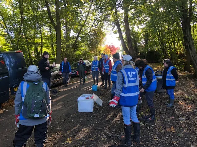 On October 21 a team of Volunteers from Thames21 with some volunteers from the Friends of Grovelands Park spent a day in the park clearing the intrusive brambles and ivy from the wetland reed beds to ensure that the reed bed continues to work to filter the pollutants that run off from the roads from contaminating the stream. The volunteers also cleared out some of the debris and fallen logs from the stream to help it flow better. We are most grateful to Thames21 for this much needed initiative.
